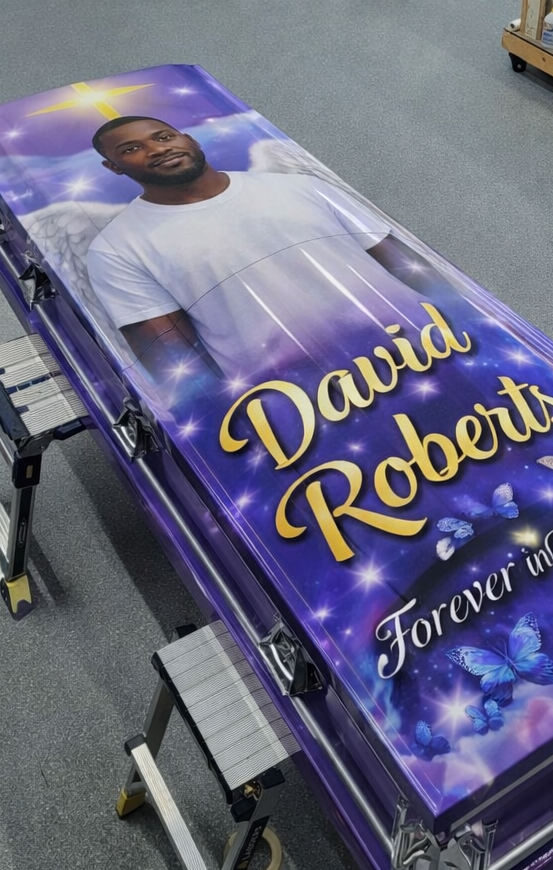 Our custom casket wraps are made with premium cast vinyl and laminated for durability. Personalize with photos, colors, and heartfelt messages to create a meaningful tribute that honors your loved one’s memory.